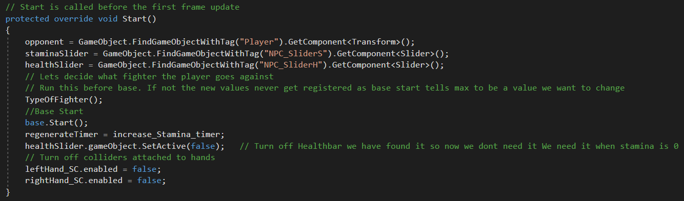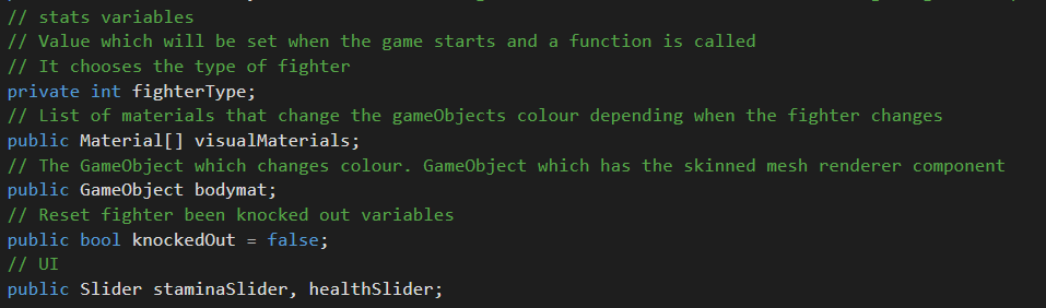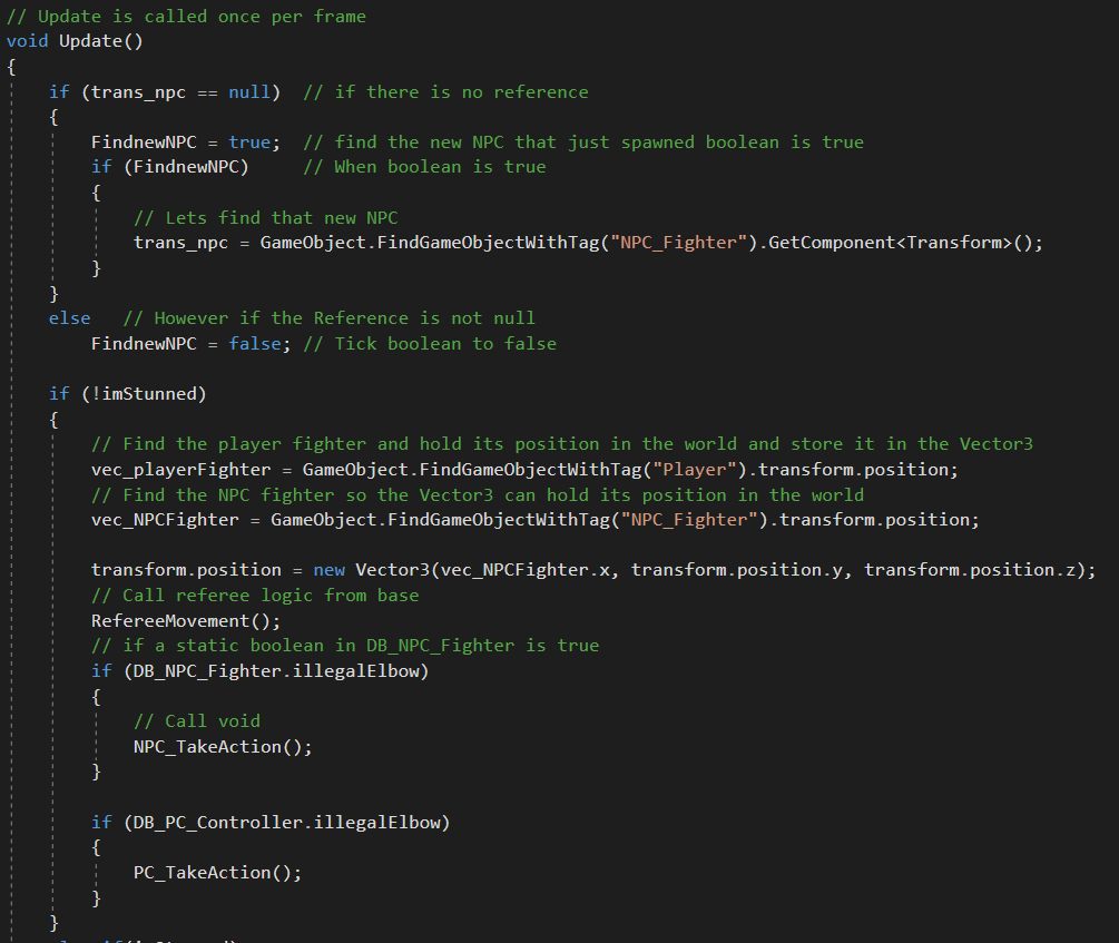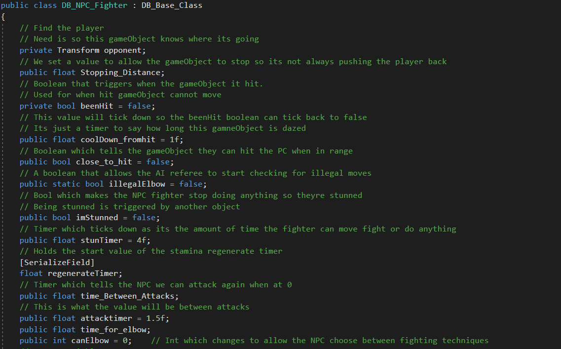 This is the script which allows the NPC fighter to know what to do in different game states, allowing for movement and combat.