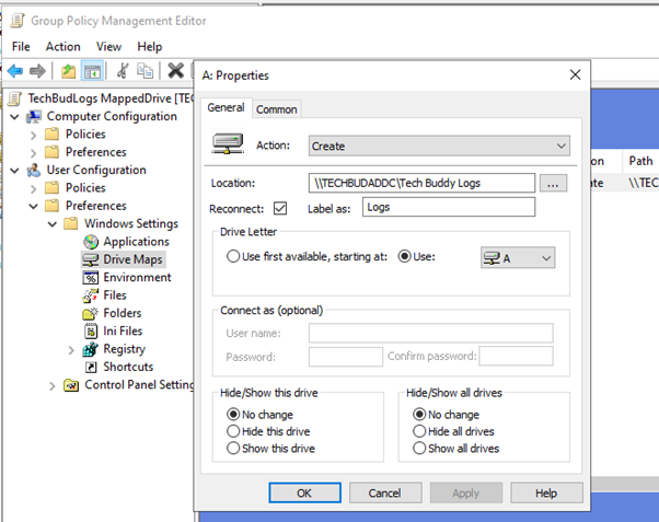 By the end you should see how I’ve created the map drive and the components needed to allow it to work.