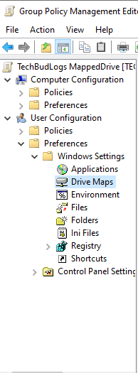Since I’ve made the policy, I then decided to right click on it and edit the policy I then made my way down to Mapped Drives.; I right clicked on this and added a new Mapped drive with the following data attached.