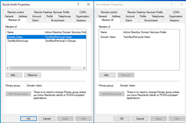 One has the group assigned and one does not. So all things considered if I now run a gpupdate for David Smith, the mapped drive should appear automatically whereas John Masters should not see the drive.